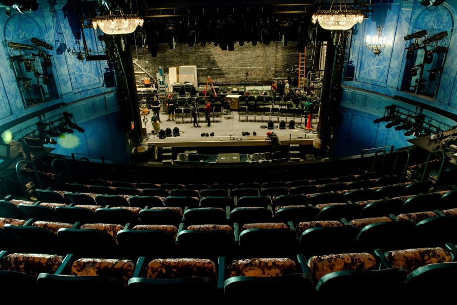 It basically looks like a giant off-Broadway theatre, lacking the storied tradition palpably communicated through the historical architecture of the other houses on the Great White Way. When visiting a Broadway theatre, I want to feel the years and the ghosts that have lodged themselves into these very same walls that have surrounded audiences for generations. The only noticeable traces of these spectral spirits reside outside on the refurbished 44th Street exterior, what with its newly-uncovered plaque that denotes its original name The Little Theatre, befitting its intimate size. I’m so enamored with the external touchups that a part of me wishes the requisite marquee was smaller to provide all of us with better views of the whole building.
