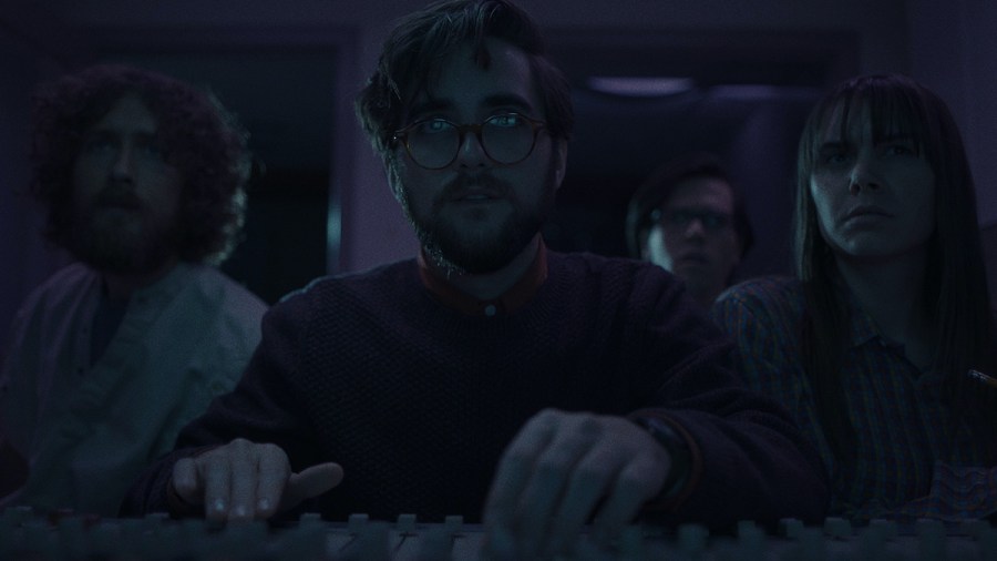 Come True inherits this recipe and adds a nifty ingredient. The movie’s second-level sound effects start taking on a rhythmic quality, almost like music. And since the electronic-heavy score is already comprised of otherworldly noises, the demarcation line between the two levels begins to blur … in a movie about the thin osmosis between dreams and reality. If our waking reality is one level of reality, and if our dreams are another, and if they’re not as separate as we’d like to believe, Come True’s audio reflects these ideas. Its sound design is not reserved only for sound effects the characters hear; at times, the musicalish noises only the audience hears seem to come from a different reality, related to but not directly representative of what’s on screen.