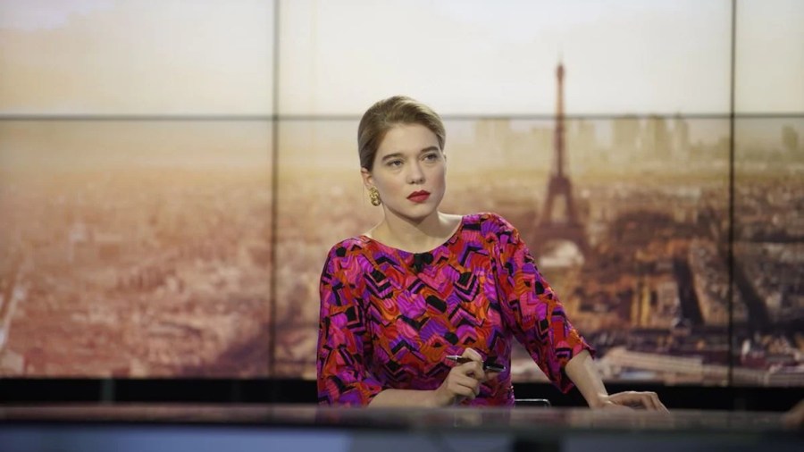 France‘s first scene takes place during a Macron media scrum. Politicians and the political press small talk in the hush immediately prior to the President’s arrival. The catch: the movie does not subtitle their murmurings. Because such public-private interactions are a bunch of nothing, all for show and for the performative spectacle of it all? Politics and political media are ostensibly about the substance of such conversations. And yet, these discussions are usually more about the appearance of having a conversation than what’s actually being discussed. Leaving their words un-subtitled directs our attention to the artifice on display, AND foregrounds the movie’s ultimate theme of how truth is manipulated, in politics and in art.