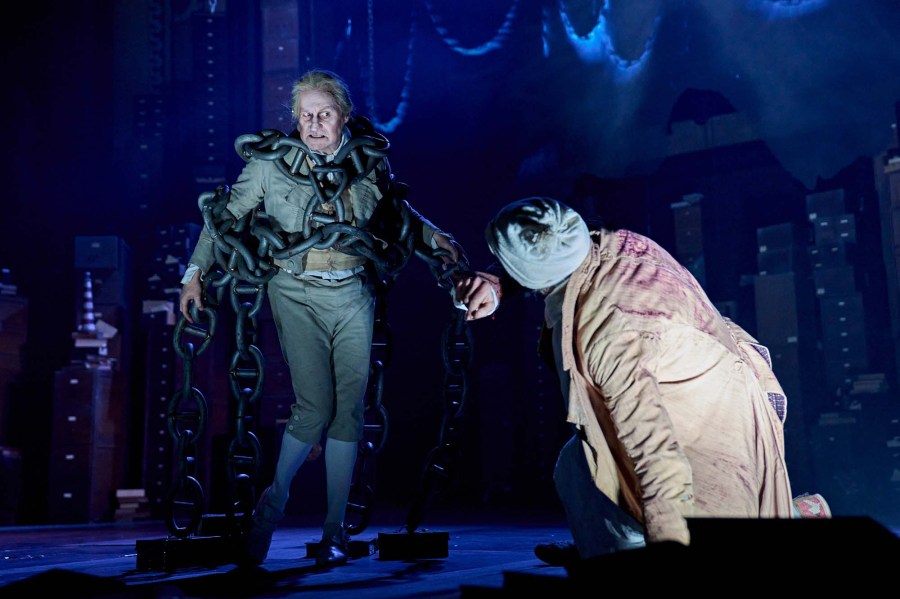 15 20 minutes later, the lights rise on Scrooge still trepidatiously lumbering towards that door. There’s just something so wondrously cheeky/corny/cheesy/hokey about this bit of stagecraft; I get a little blip of bemusement every time I encounter it.