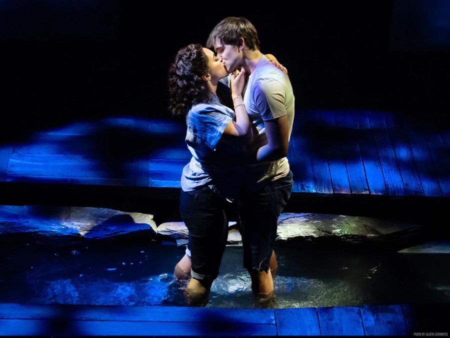 Days of Wine and Roses featured and The Notebook features a downstage body of water, running parallel to the lip of the stage, throwing hazy reflections of the water’s ripples onto the walls of their respective sets.
